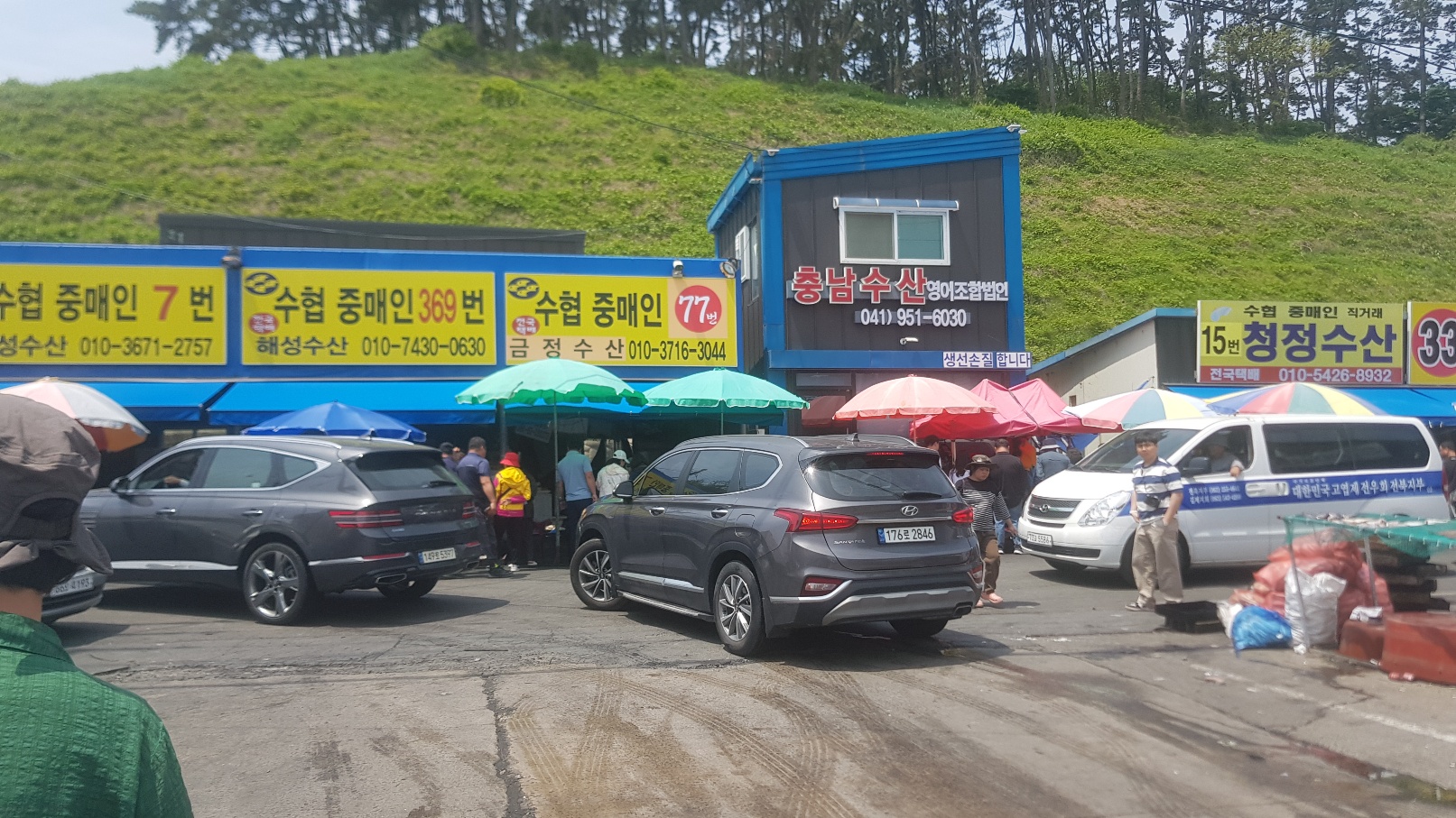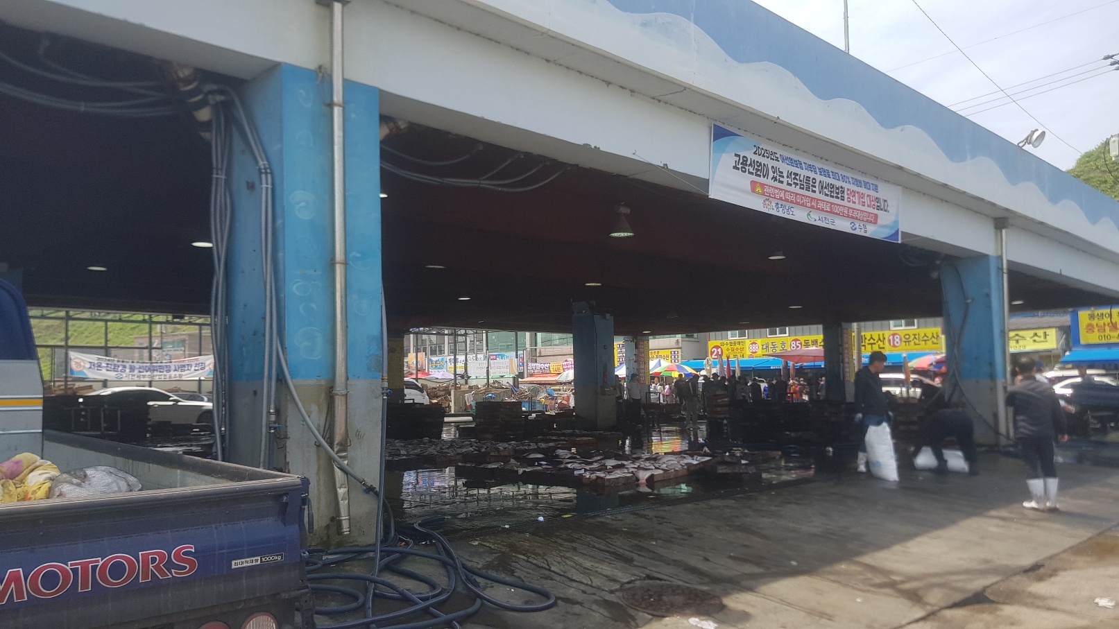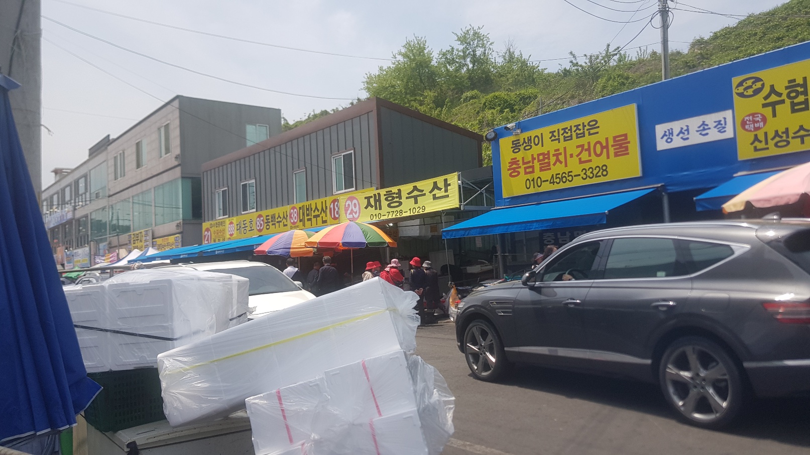 홍원항 공영주차장에 차를 주차하면 보이는 상가들인데 한 15~20개 정도의 가게에서 각종 수산물을 저렴하게 판매하고 있습니다.가게 간판의 숫자는 도매상(?) 인증 번호라고 하더라구요. 이게 있어서 홍원항에서 잡아온 수산물 경매를 참여할 수 있는거 같더라구요. 제가 방문한 날은 일요일이라서 그런지 사람들이 꽤 많았지만 다들 물건을 사고 바로바로 빠졌어요.